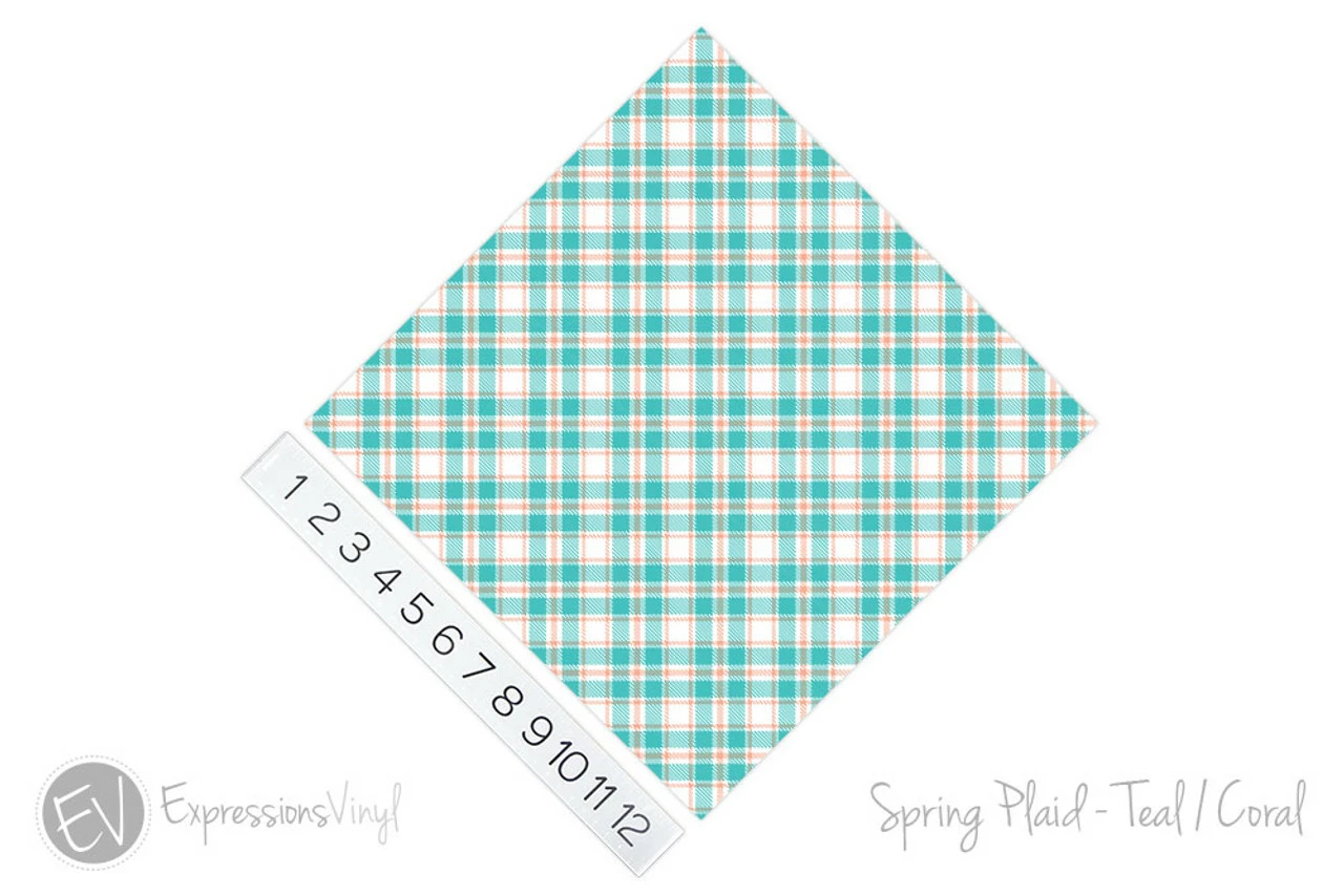12"x12" Patterned Heat Transfer Vinyl - Spring Plaid - Teal/Coral -Sewing Supplies Sales 2024 SpringPlaid Teal Coral 27417.1523986223